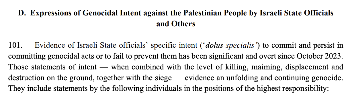 В качестве намерений иск приводит ряд цитат израильских министров, политиков, военных и экспертов, допускавших жесткую и неоднозначную риторику в сторону жителей Газы.