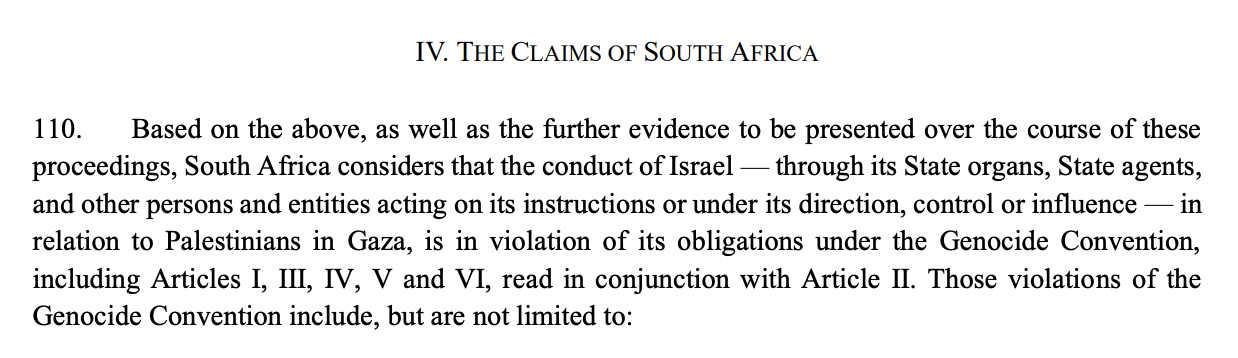 Иск основывается на представлении действий и намерений Израиля как направленных на геноцид.