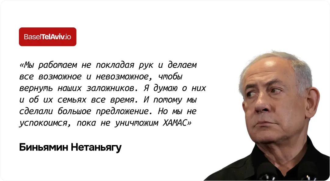 Еще раз. Израиль уже вошел в переговоры с террористами ХАМАС и пытается прийти с ними к соглашению на каких-то условиях, отправляет предложение, и в то же время израильский премьер-министр заявляет с любой удобной трибуны о том, что несмотря на то, что написано в предложении, мы продолжим войну и уничтожим ХАМАС, с которым мы пытаемся договориться. С таким же успехом, можно просто предлагать ХАМАСу капитулировать и ждать, что они на это с какой-то стати пойдут.