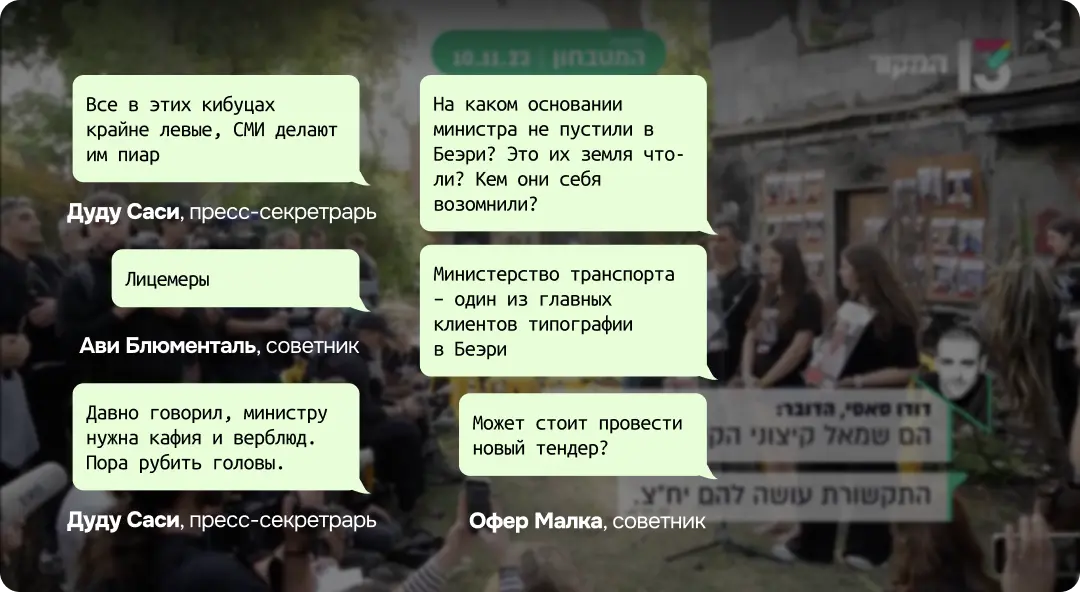 А три недели спустя, когда жители кибуца Беэри не захотели принимать министра на церемонии, ее штаб разразился волной желчной ненависти к “левым радикалам”-жителям кибуца, пережившим страшную трагедию.