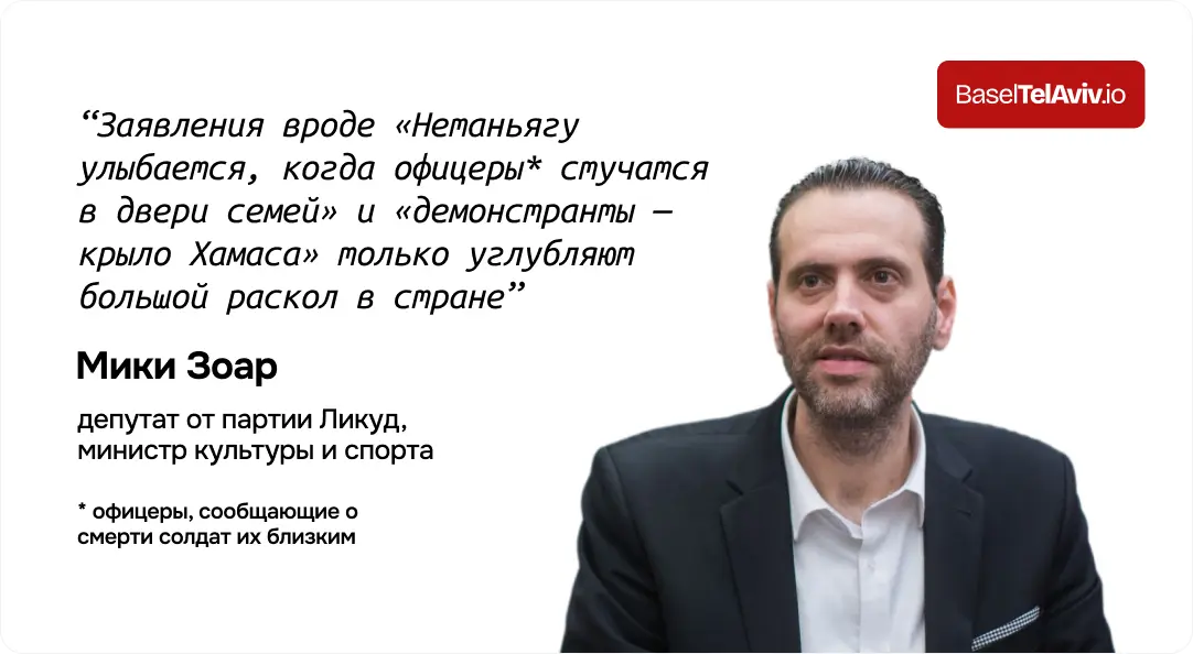 Поэтому, когда Мики Зоар приравнивает фразу Нисима Ватури к фразе лидера протестного движения Шикмы Бреслер: “Нетаньягу улыбался, когда офицеры стучались в дверь (прим. сообщающие о смерти солдат их близким)”, он ошибается и вводит общество в заблуждение.