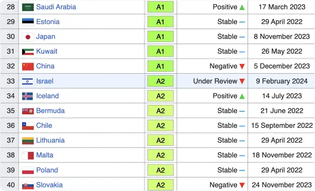 До сих пор Израиль в рейтинге Moody’s был наряду с такими странами как Япония, Китай, Саудовская Аравия и др.