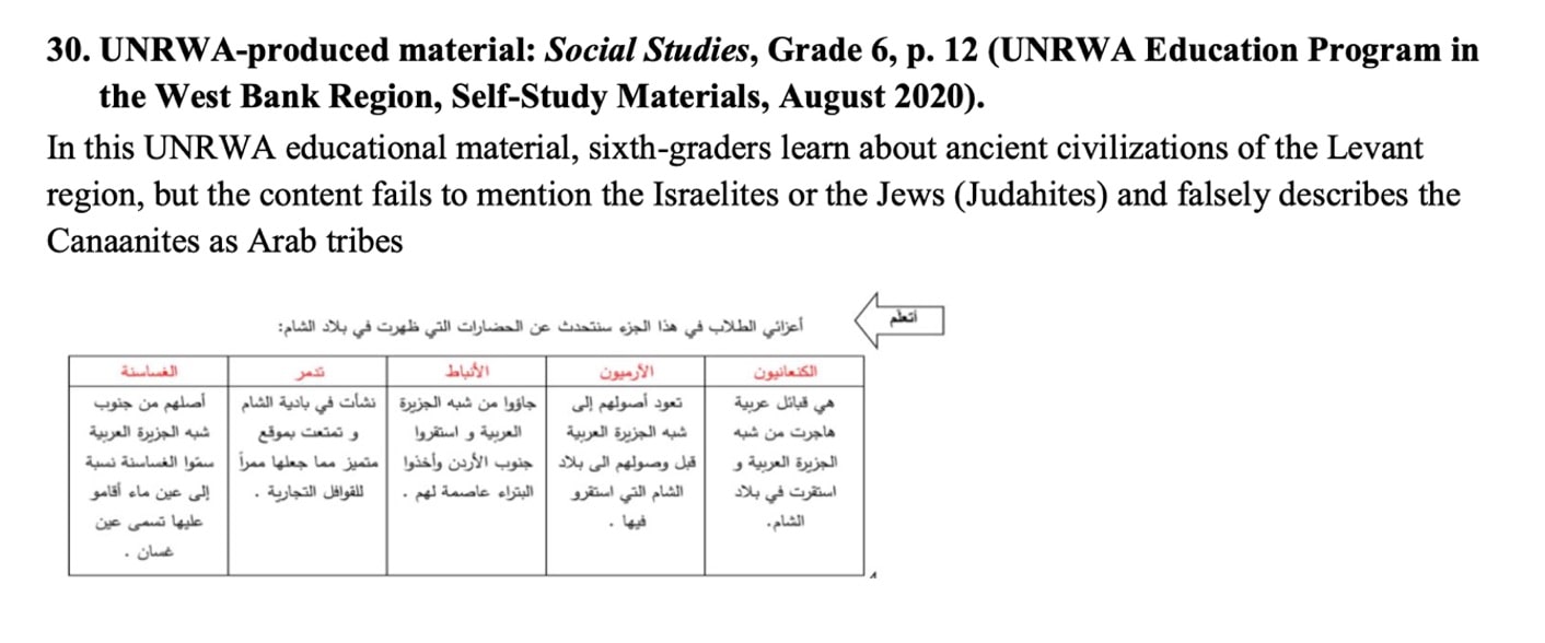 A report by the US Government Accountability Office (GAO) on the treatment UNRWA of problematic PA materials published in 2019 states that UNRWA “is taking action to address content that is inconsistent with UN values” by creating “supplemental educational materials such as alternative photos, examples, and guidance for teachers on how to use textbooks in schools UNRWA.” However, the report also claims that “UNRWA does not train teachers or distribute supplementary educational materials in classrooms. As a result, these materials are not actually used.”