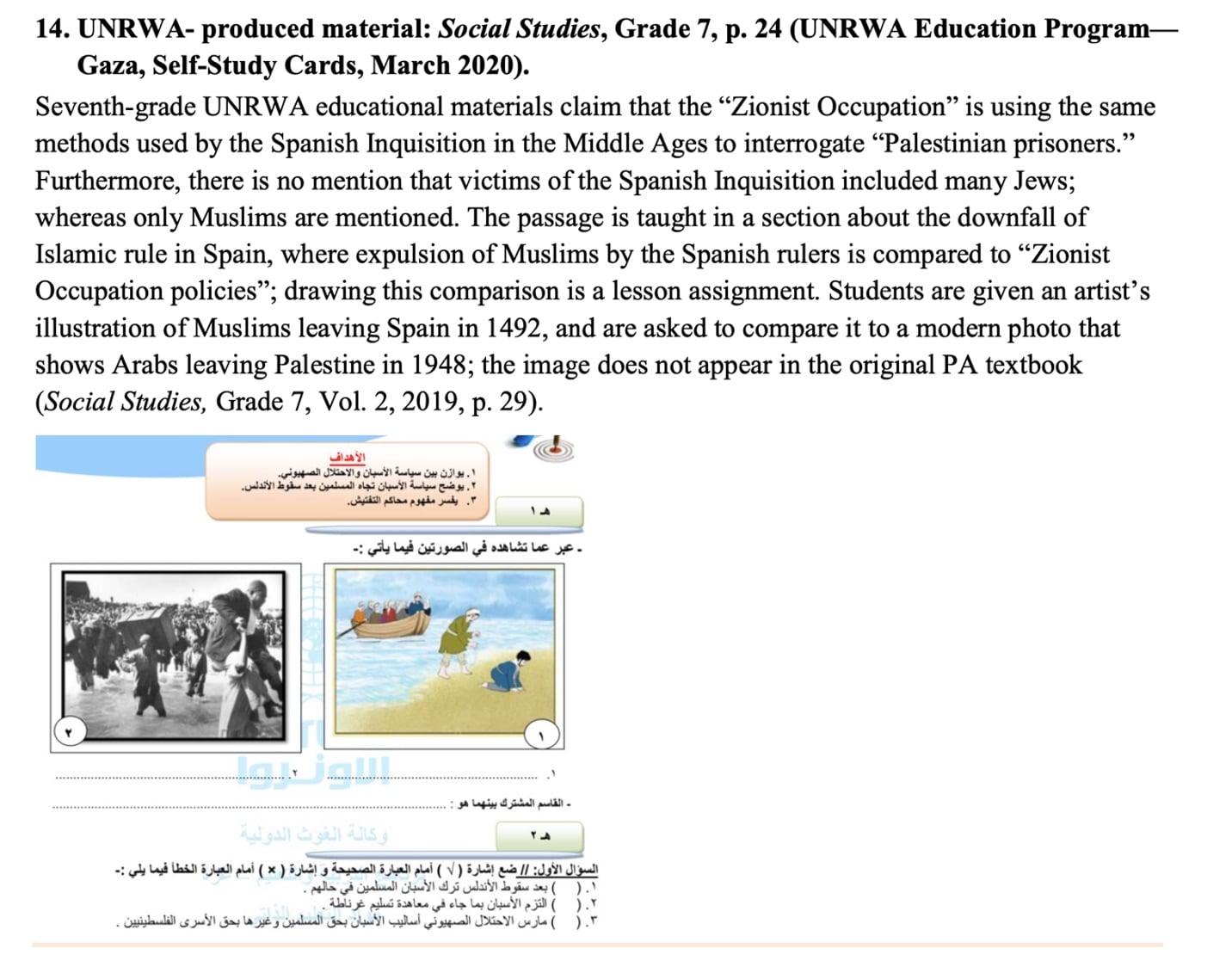 Speaking of the Spanish Inquisition, textbook is not only accusing Israel of “using the same methods to interrogate Palestinian prisoners,” but also omits that the victims of the Inquisition included Jews, and compares the events of 1492 with those of 1948.
