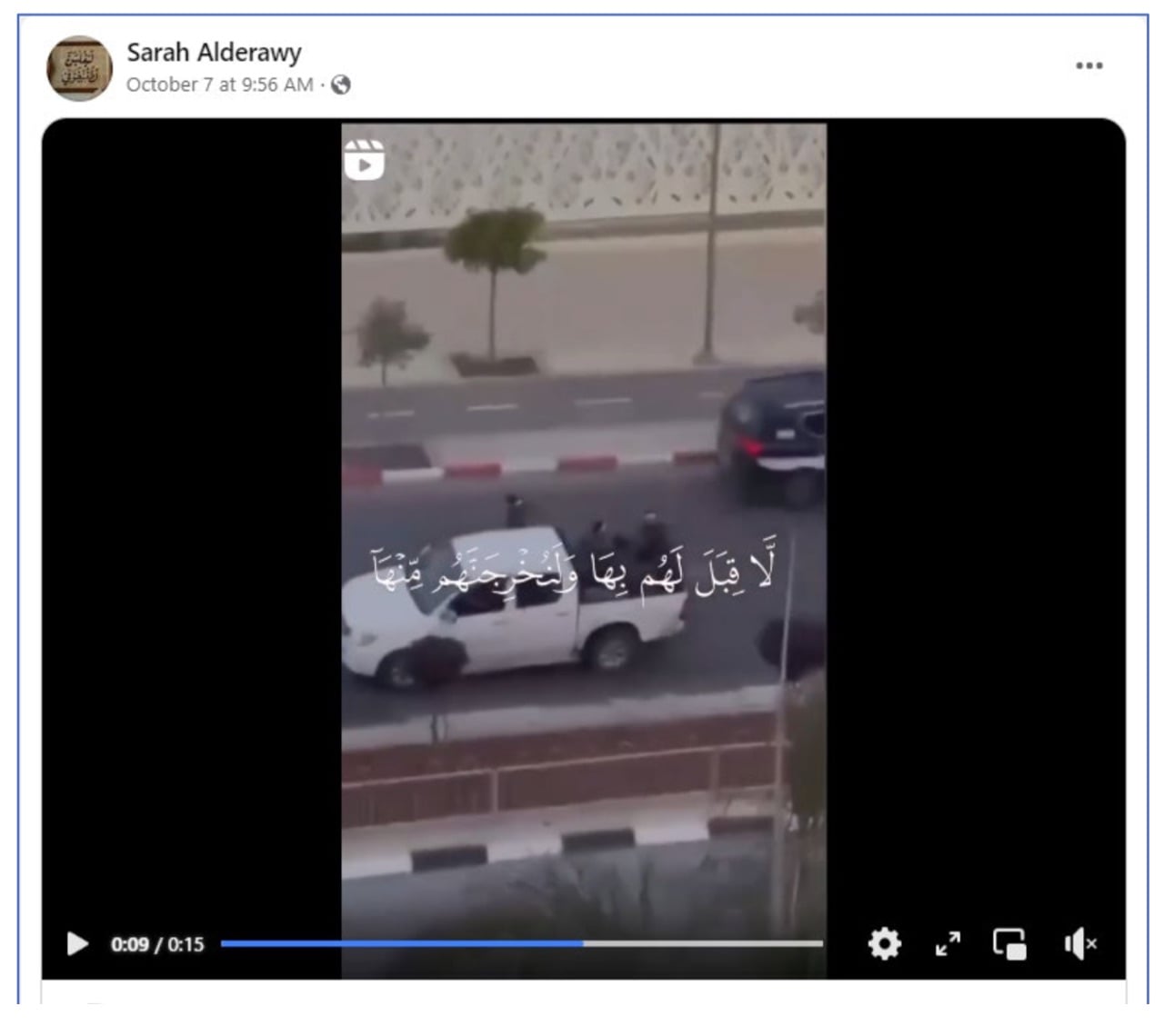 Sarah Alderawy is an UNRWA teacher. She has repeatedly published posts calling for violence. For example, on the morning of October 7, she reposted a video showing the destruction from a rocket fired from Gaza into Israel and Hamas terrorists shooting Israeli cars. A quote from the Quran accompanies the video: “Return to them, and we will surely arrive with an army before which they will not resist, and drive them out of there humiliated and insignificant.” [An-Naml: 37].