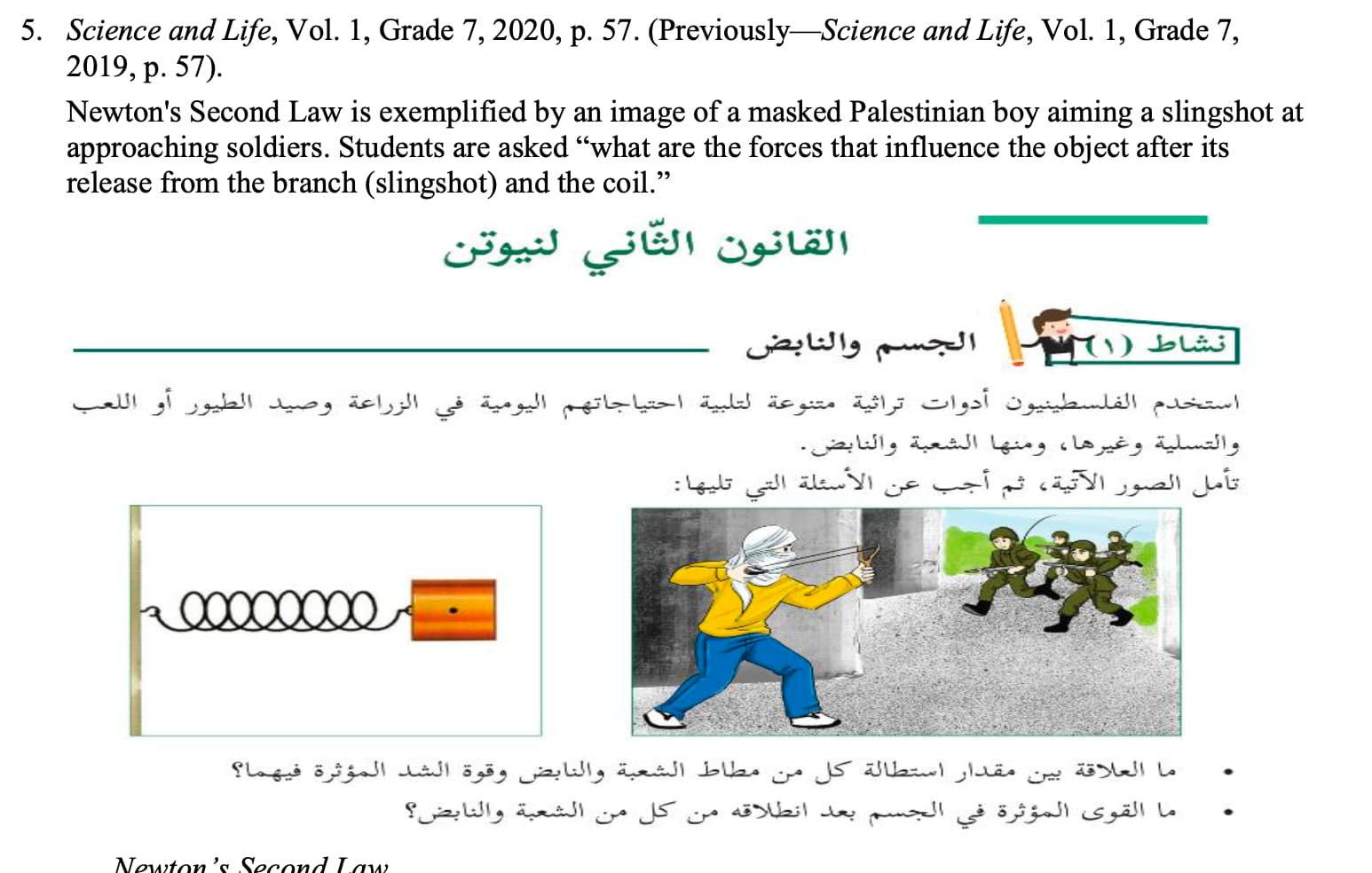 Elastic strain energy and acceleration calculations are explored through stone-throwing at protests. Sound waves – through calls to prayer at the Al-Aqsa Mosque, allegedly silenced by Zionists.