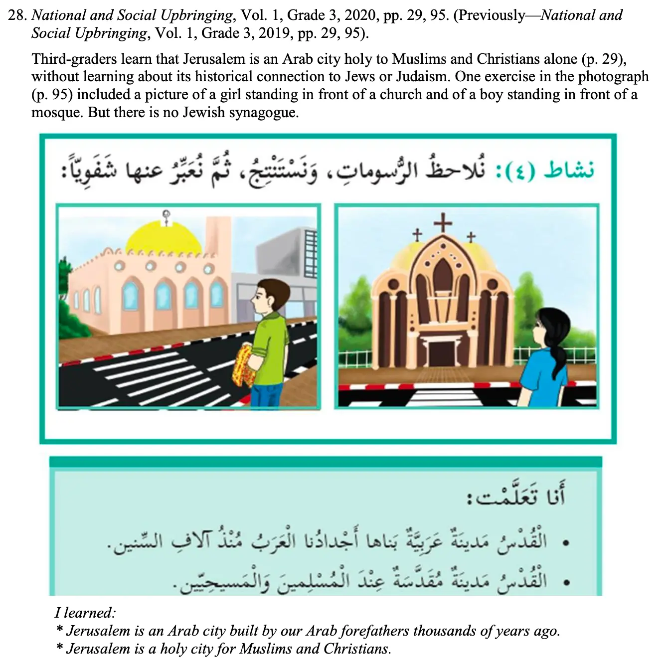Jerusalem is presented as a city built by Arabs thousands of years ago and sacred to Muslims and Christians.