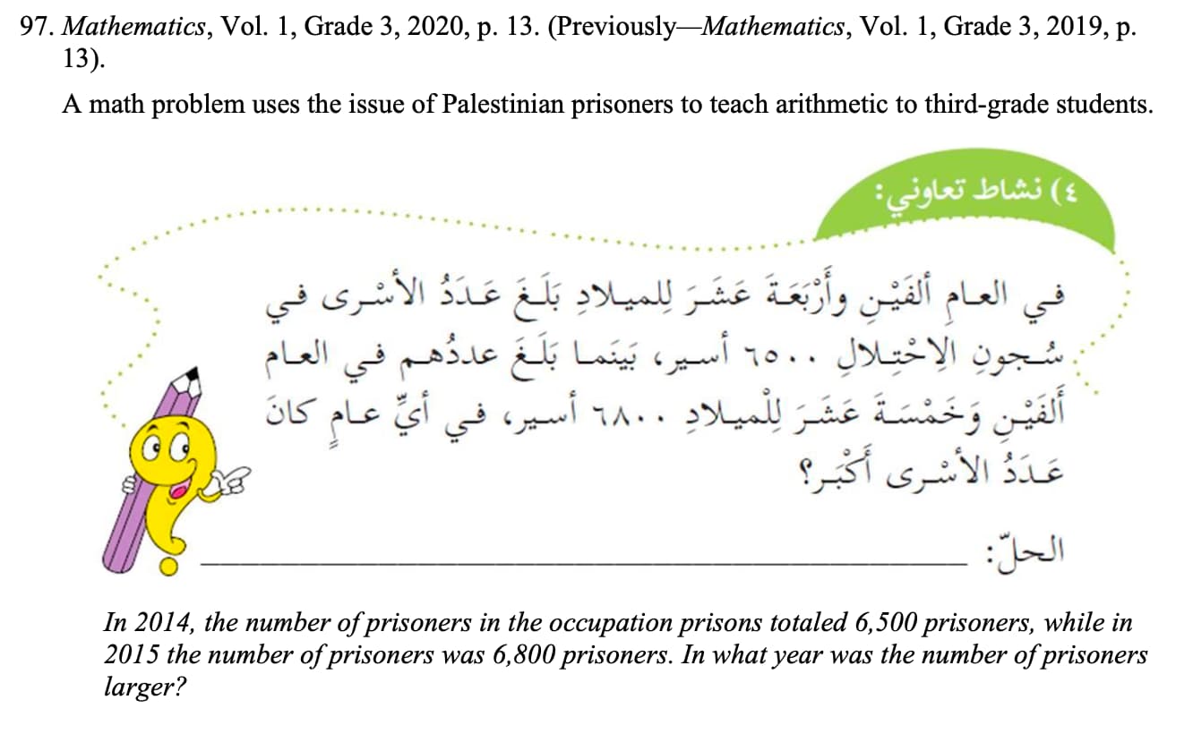 Pupils are asked to count not apples or candies, but martyrs and prisoners in Israeli prisons.